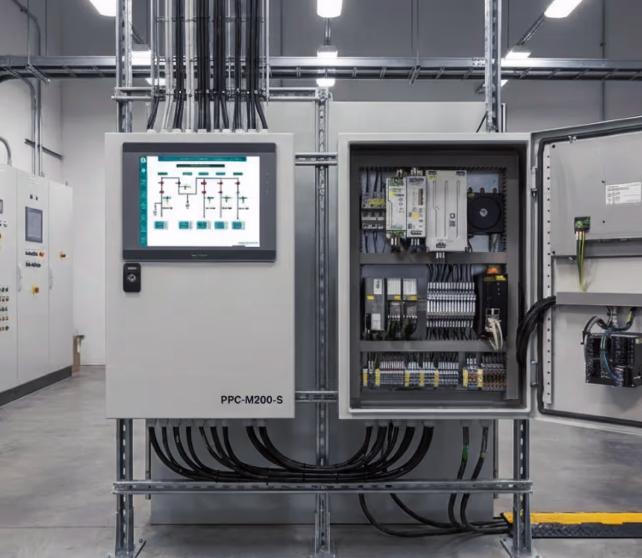 The Power Plant Controller (PPC) controls individual inverters to maintain specified active power, reactive power, voltage, power factor and frequency in compliance with the grid codes/standards and reference points from grid operator.